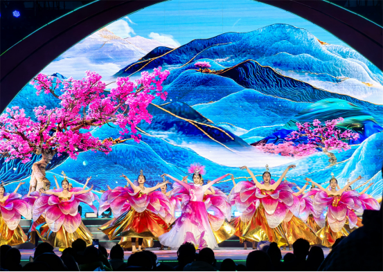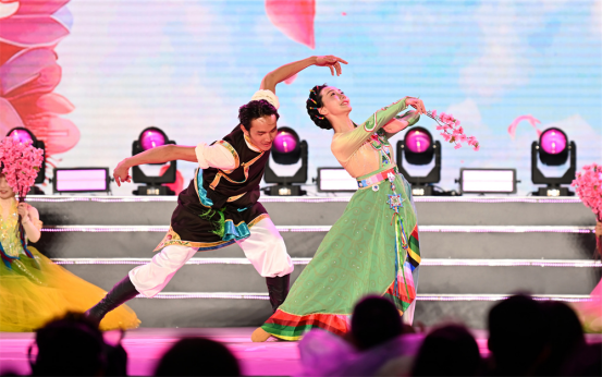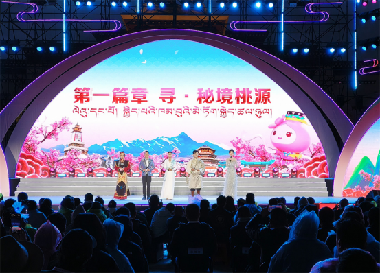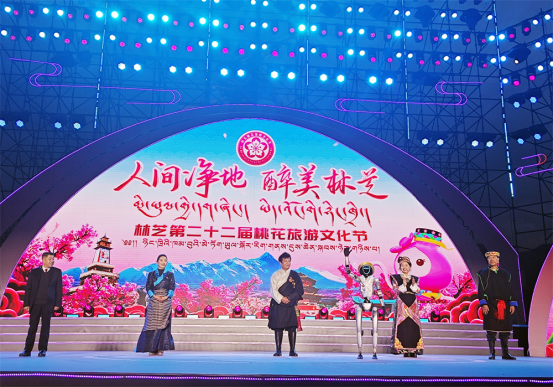开幕式上,五位来自基层的代表作为“桃花推荐官”与智能机器人“多吉”共同启动了开幕仪式。“寻·秘境桃源”“绽·雪域新生”“颂·高原华章”三个篇章华丽登场,其中,《林芝间》《玛恰霞布卓》《达东查姆》《千古之声》等十余个林芝本土非遗特色节目与北京平谷《说唱脸谱》、那曲锅庄、峨眉派女子功夫团、广州飞行员舞团等多个精彩节目同台碰撞,文化魅力激情四射,为线上线下观众献上了一场视听盛宴,特别是机器人推介官以汉藏双语演绎的“踏春之旅”,更成为新时代智慧文旅推广的生动注脚。整场晚会通过非遗文化、现代艺术表达与数字文化创新的深度融合,全方位展示了林芝的生态之美与文化活力,将人间桃源、幸福林芝具象化,呈现了林芝改革开放先行区建设的丰硕成果,更映照出各族群众携手绘就幸福生活的美好愿景。